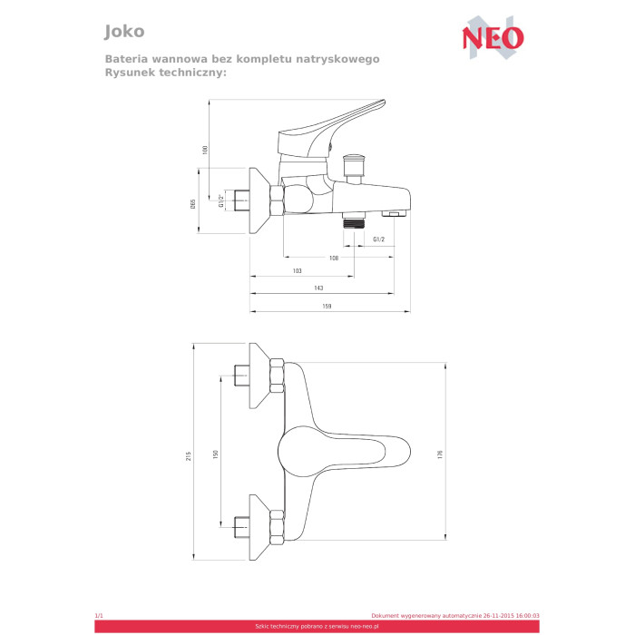 Joko BOJ 010M Змішувач для ванни